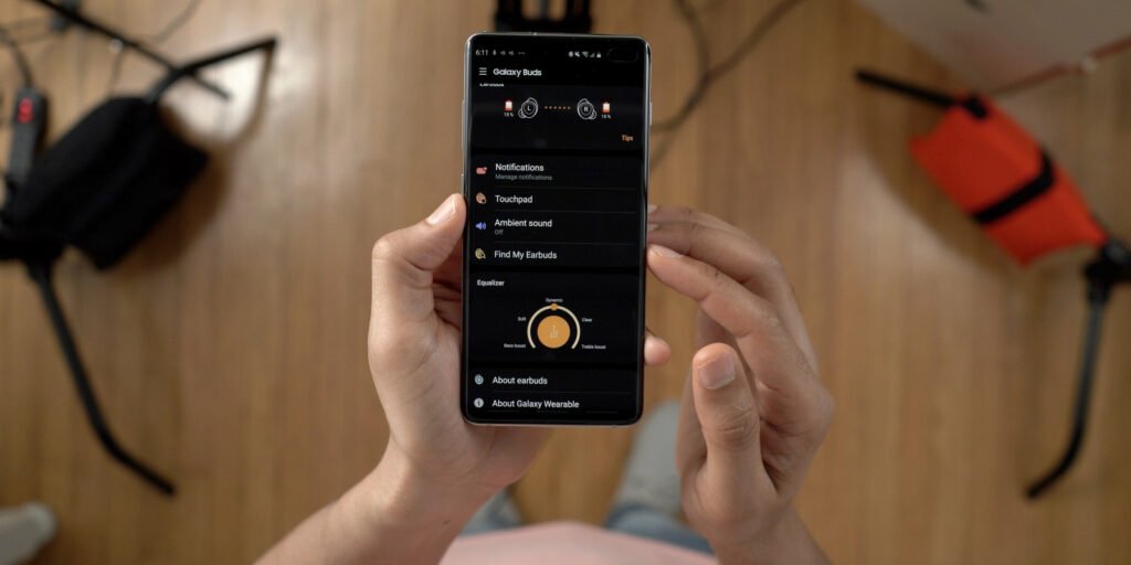 A Buds szoftveres részét egyébként a Galaxy Wearable alkalmazásban lehet személyre szabni, ami remek gondolat – sokkal jobban kézre esik, mint a Bluetooth-menüben való kutatás, ugye, Apple? Az alkalmazáson belül személyre szabhatóak a gesztusok, az Ambient funkció beállításai, illetve a Find My Earbuds, ami, ahogy a neve is mutatja, a házon belül elhagyott fülesek előkerítésében nyújt segítséget. A gesztusok állítgatásánál is rengeteg lehetőségünk van: zene indítása/megállítása, előre-hátra ugrálás, sőt, az alkalmazáson belül további parancsokat is hozzárendelhetünk egy-egy mozdulatsorhoz, mint például a hangerő szabályozását, a Quick Ambient Mode funkciót, vagy Bixby-t.