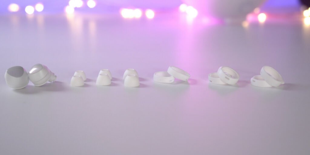 Az AirPods a felhasználók legnagyobb részének jó választás, azonban így is előfordulhat, hogy valakinek a füle egyszerűen nem kompatibilis az almás füles kialakításával. A Samsung ezt a problémát úgy oldotta meg, hogy a dobozba három-három, eltérő méretű szilikongyűrűt és “hegyet” pakoltak, így valamennyire mindenki személyre szabhatja a saját Buds-ának kialakítását. Összerakható szűk, közepes és vékony hallójáratra szabott Galaxy Buds is, így nagyon kicsi annak az esélye, hogy ne illeszkedjen az ember fülébe az eszköz. A fülbe hatoló szilikonok ráadásul remekül szűrik a külső zajokat, a “wingtip”-nek keresztelt gyűrűk pedig nyomást helyeznek az ember fülének külső részére, így rögzítik az egész eszközt. Se séta, se futás, de még a sprint sem fogott ki a Samsung fülesein, sportra tökéletesen alkamasak.