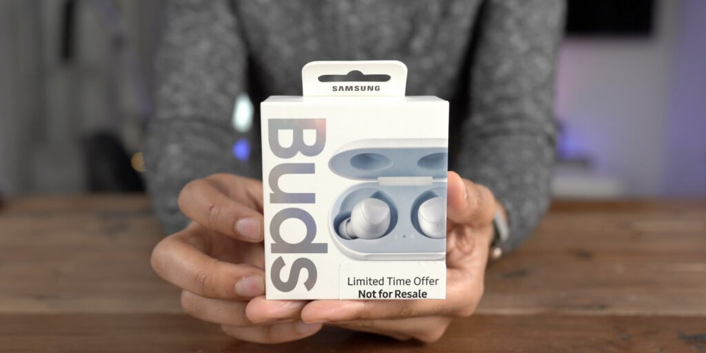 A Galaxy Buds az AirPods csomagolásához hasonlóan egy apró, téglatest alakú dobozban érkezik. A dobozon belül megtalálható maga a tok a fülesekkel, egy kiegészítőket tartalmazó karton, illetve a kötelező papírok. Érdekesség: ha megfelelően korán rendelte meg az ember a Galaxy S10 széria valamelyik tagját, akkor a Samsung az ajándék Galaxy Buds dobozára egy órmótlan “Not for Resale” (nem eladásra) matricát ragaszt, hogy elvegye a profitvadászok kedvét a fülhallgató elpasszolásától.